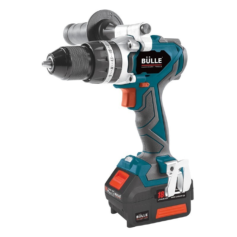 Κρουστικό δραπανοκατσάβιδο λιθίου δύο ταχυτήτων, με μοτέρ Brushless (χωρίς καρβουνάκια), δύο μπαταρίες λιθίου με ενσωματωμένη ένδειξη φόρτισης, λυχνία φωτισμού LED και ταχυφορτιστή 4Α. Συνοδεύεται με βαλιτσάκι μεταφοράς και χειρολαβή.