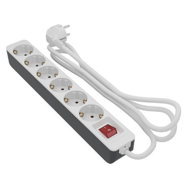 Πολύπριζο με διακόπτη 6 θέσεων και μήκους 1,5m.